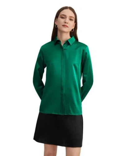 LILYSILK Basic Concealed Placket Silk Shirt In Green Jade