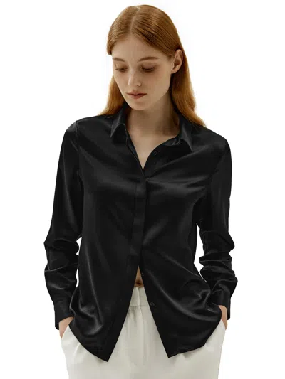 LILYSILK Basic Concealed Placket Silk Shirts In Black