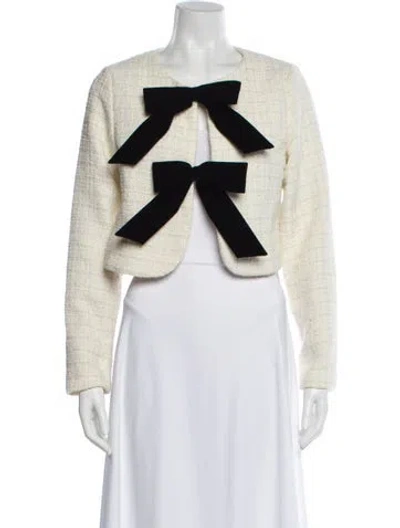 Line & Dot Evening Jacket White Colorblock Pattern Bow Accents & Pointed Collar Button Closure Fit: Jackets by Line & Dot typically fit true to size. | Line & Dot Colorblock Pattern Evening Jacket in White, Women's XS