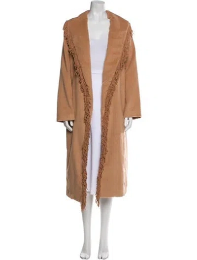 Line & Dot Wool Coat Neutrals Fringe Trim Accent & Shawl Collar Long Slit Pockets & Open Front Fit: Coats by Line & Dot typically fit true to size. | Line & Dot Wool Coat in Neutrals, Women's M