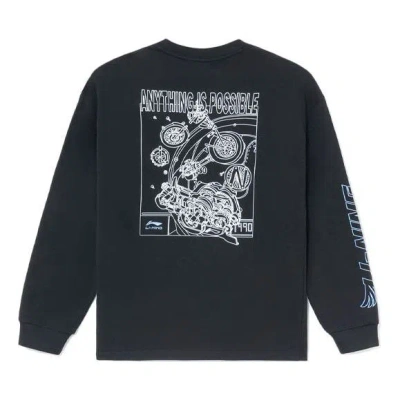 Men's LiNing Sports Stylish Series Logo Alphabet Pattern Printing Loose Round Neck Long Sleeves Black T-Shirt AHSS019-2 (Men's/Loose Fit/Round Neck)