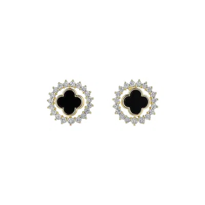 Black enamel centers framed by a radiant CZ halo. Bold contrast, brilliant edge.
