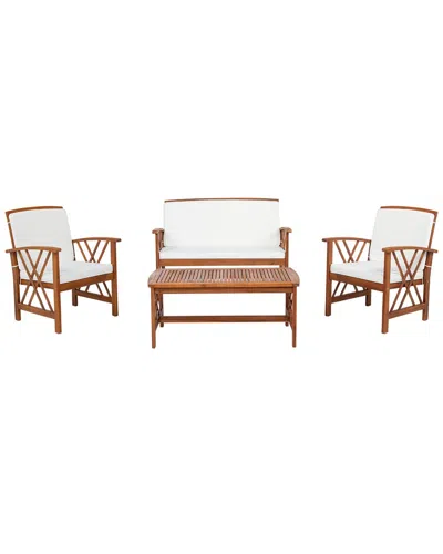 Color/Finish: Brown; Brown Finish Design Details: Where Timeless Style Meets Everyday Comfort. This 4-Piece Outdoor Set Includes Two Armchairs, A Spacious Bench, And A Slatted Coffee Table—All Crafted From Solid Acacia Wood With A Warm Brown Oil Finish. The Airy Silhouette And Geometric Side Panels Bring A Decorative Touch, While White Woven Polyester Cushions Add Fresh Contrast And A Soft Place To Land. Whether You’Re Hosting A Garden Party Or Enjoying A Quiet Morning Outdoors, This Set Creates A Polished And Welcoming Vibe. Seat Dimensions: 23.25In X 26In Acacia Acacia: Wipe Down The Wood With A Damp Clean Cloth Or Use A Soft Damp Brush To Prevent Dust And Pollen From Accumulating. For Deeper Cleaning To Remove Stains, Mold, And Mildew, Use A Mild Natural Soap, Warm Water, And A Soft Brush. Do Not Use Soap That Contains Ammonia Or Silicone. It Will Strip Down The Outer Layer Of The Wood. Assembly Required Imported Contents Of Set: Two Chairs, Loveseat, Table