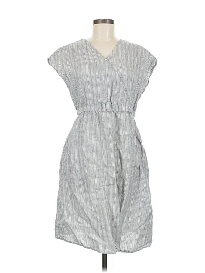 Lintico Casual Dress, Size: Medium. Item Details: Gray, Stripes Pattern, Popover, V Neck, Knee Length, Short Sleeve, Women's Dresses, 100% Linen