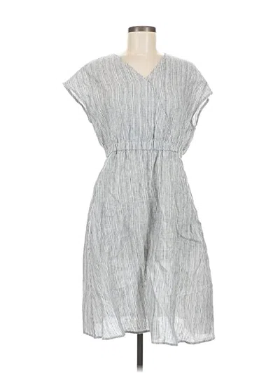 Lintico Casual Dress, Size: Medium. Item Details: Gray, Popover, V Neck, Knee Length, Short Sleeve, Frayed Edges, Women's Dresses, 100% Linen