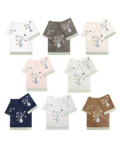 The Stella towels feature lovely flower stems in an applique blue and white vase and are trimmed with a lustrous bengaline border. Cloud soft and absorbent, these luxurious, durable towels keep their plush appearance after washing.
