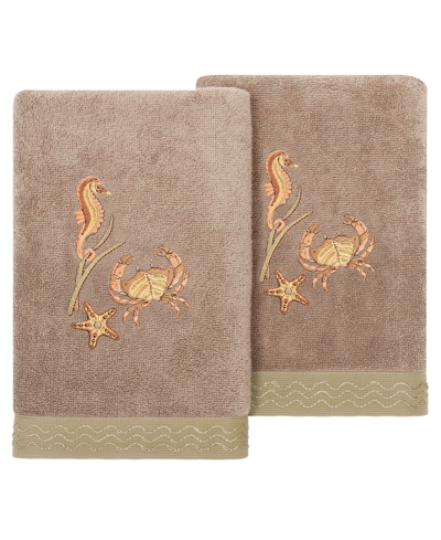 LINUM HOME Turkish Cotton Aaron Embellished 2-pc. Hand Towel Set In Cocoa