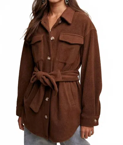 LISTICLE Soft Teddy Shacket With Tie In Mocha In Brown
