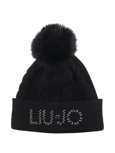 Liu Jo black logo hat, frontal logo, pompon detail Composition: 50% Wool, 30% Poliammide , 20% Acrilica
