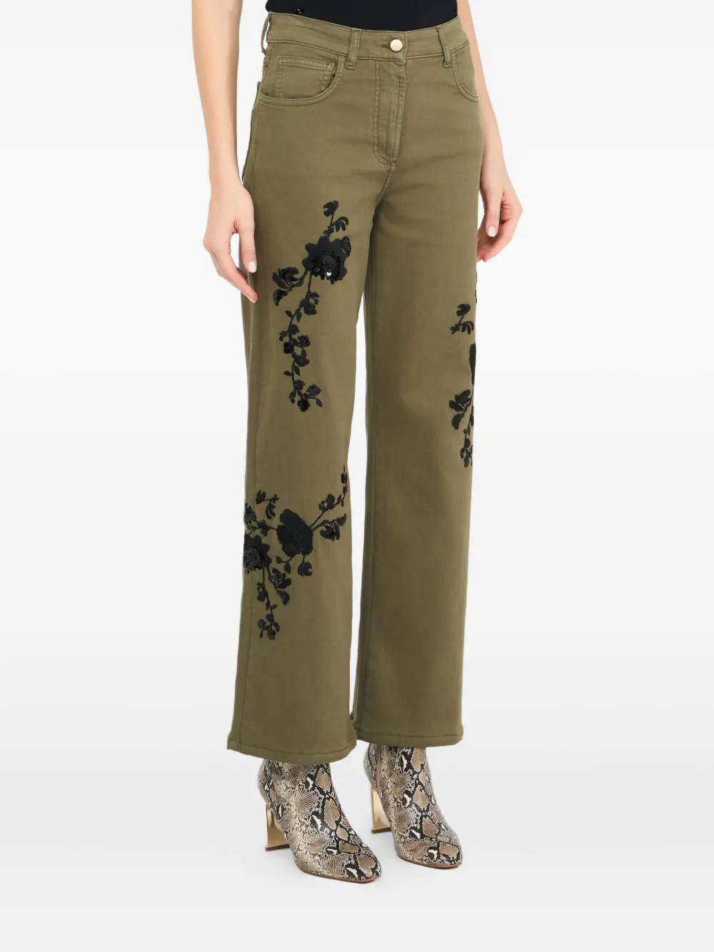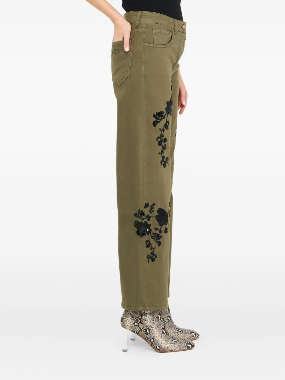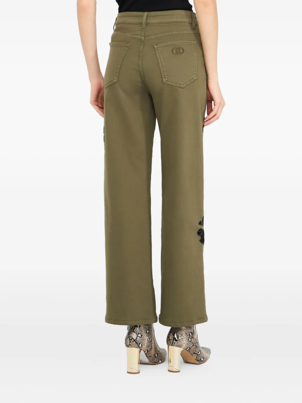LIU •JO Floral-embroidered Flared Jeans In Green