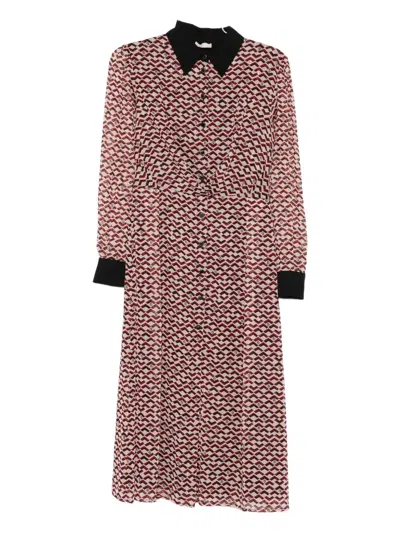 Light beige and red midi dress by Liu Jo featuring a geometric pattern. Designed with a front button fastening and long sleeves for an elegant, refined look