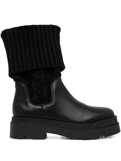 LIU •JO Knitted-panel Boots In Black