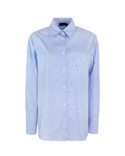 Light blue shirt embellished with rhinestones by Liu Jo.