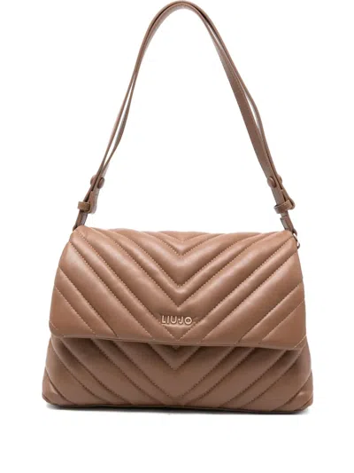 LIU •JO Medium Grigio Handbag With Quilted Chevron Design In Brown