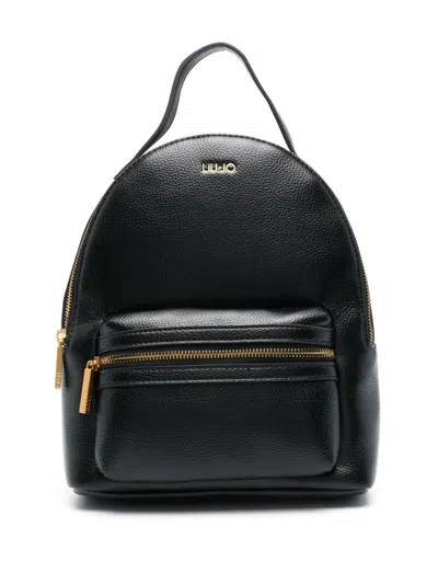 Liu-Jo Jorah tumbled leather effect PU backpack, LiuJo Better product, black colour, top handle, front pocket with zip and metal logo, central compartment with zip, adjustable shoulder straps, internal pockets, animal print lining, gold metallic finishes. Measurements: height 28cm, length 22cm, depth 10cm. Composition: 100% Polyurethane;