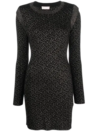 LIU •JO Monogram-pattern Knitted Minidress In Black