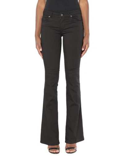 LIU JO Pants. plain weave, logo, solid color, low waisted, slim fit, flare & wide-leg, button, zip, multipockets, stretch, contains non-textile parts of animal origin. 67% Cotton, 29% Polyester, 4% Elastane