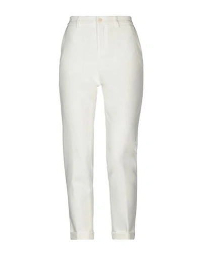 crepe, logo, basic solid color, mid rise, regular fit, tapered leg, button, zip, multipockets, cuffed hems, stretch, tailored , Color: White , Size: 8