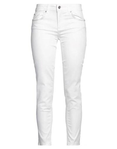 twill, leather applications, brand logo, solid color, low waisted, belt loops, tapered leg, slim-leg pants, 1 button, zipper closure, five pockets, stretch, contains non-textile parts of animal origin, 5 pocket , Color: White , Size: 33