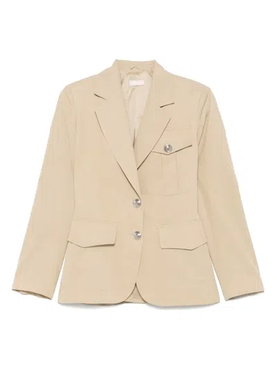 single-breasted blazer, woven, solid color, brand logo, lapel collar, long sleeves, buttoned cuffs, partially lined, button fastenings, flap pockets, one chest pocket, rear slit, dry clean, do not bleach, do not tumble dry , Color: Beige , Size: 10