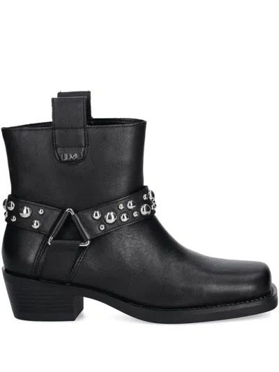 LIU •JO Studded-strap Boots In Black