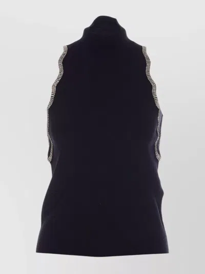 high neck | sleeveless | Turtleneck | Fitted silhouette | strass glitter detail | black top | Embellished trim | mini plaque logo on the back