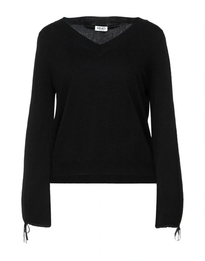 knitted, brand logo, lightweight knit, v-neck, solid color, long sleeves, no pockets , Color: Black , Size: S