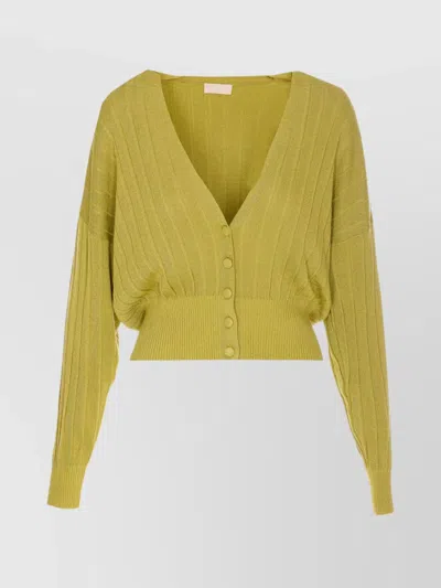 Liu Jo lime cardigan with frontal buttons closure, V-neck, long sleeves, lurex effect Composition: 70% Viscose, 19% Polyester, 11% Metallized Polyester