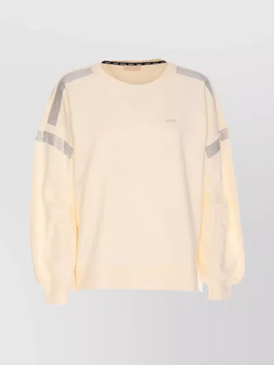 crewneck | long sleeves | cream sweatshirt | strass detail on the front | Embellished shoulders | Ribbed cuffs | Ribbed hem