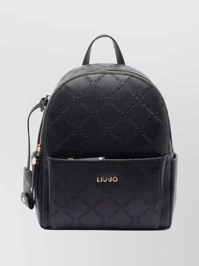 Liu Jo black backpack, logo on the front, zip closure, external zip pocket and 2 open pockets on side, one handle, adjustable shoulder strap, logo Composition: 100% Polyester