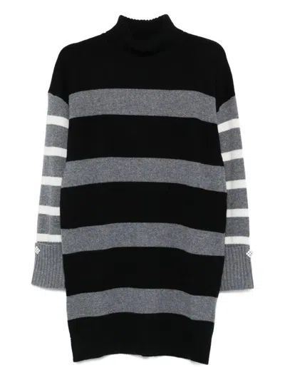 black horizontal stripe turtleneck long sleeves embellished cuffs