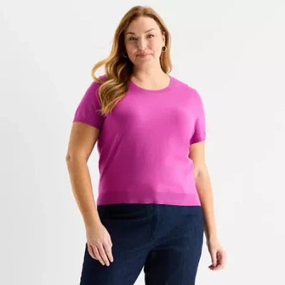 LIZ CLAIBORNE Plus Womens Crew Neck Short Sleeve Pullover Sweater In Multi