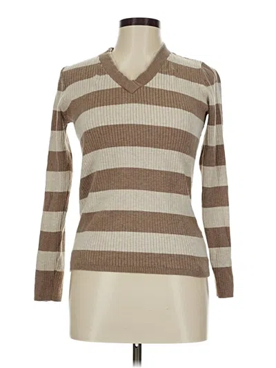 Liz Claiborne Pullover Sweater, Size: Medium. Item Details: Brown, Stripes Pattern, V Neck, Long Sleeve, Women's Tops, Cotton/Nylon