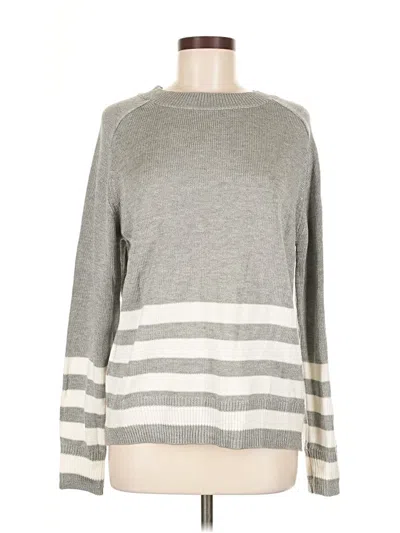 Liz Claiborne Pullover Sweater, Size: Medium. Item Details: Gray, Stripes Pattern, Boatneck, Long Sleeve, Women's Tops