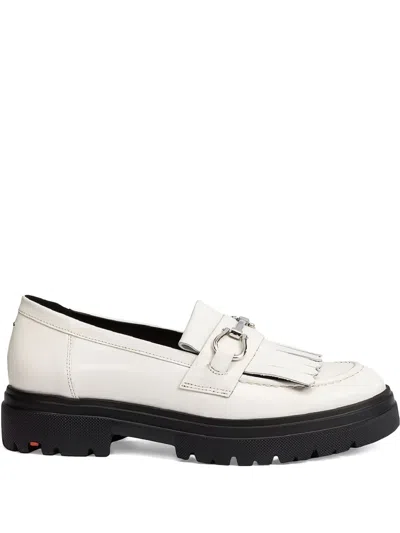 white fringed detailing metal hardware accents chunky sole slip-on design