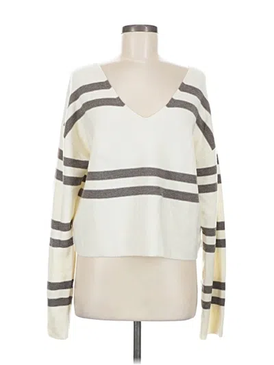 LNA Pullover Sweater, Size: Medium. Item Details: Ivory, Stripes Pattern, Plunge Neckline, Long Sleeve, Women's Tops, Acrylic/Modal/Polyester
