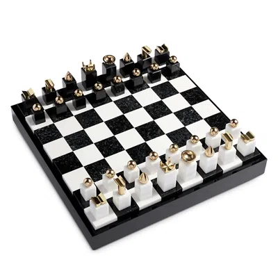 L'Objet Chess Set.Color:Black.Material:Board: lacquered Macassar ebony wood/marble/brass/shell inlay; playing pieces: marble/brass.