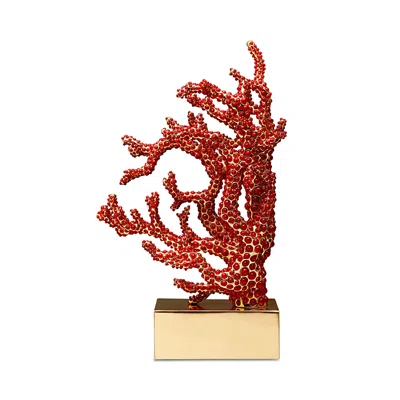 L'Objet Coral Bookend.Color:Red And Go.Material:24K gold plate, red coral cabochons.