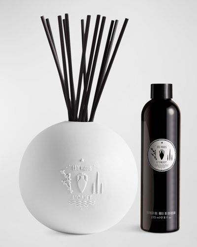 L'Objet Cote Maquis Apothecary Diffuser, 8 oz. A sculpted bisque porcelain orb with perfumed oil is presented in a gift box. The L'Objet Apothecary collection transforms ordinary rituals into extraordinary escapes. A modern take on age-old Mediterranean traditions, Europe's beauty artisans and L'Objet house perfumer Yann Vasnier use natural ingredients to formulate rich fragrances and bathing experiences to invigorate the body and mind. C & Ocirc;T & Eacute; MAQUIS:.
