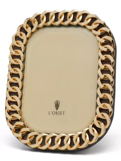 The Cuban Link frames are elegant and refined with an art deco character. It’s the details that count: 24K gold plated surrounds, a bevelled glass front, satin lining and a leather back. Satin lining 24K goldplated/glass/leather Spot clean Imported SPECIFICATIONS Accommodates 5" x 7" photograph Style code : 0400012486721 GOLD