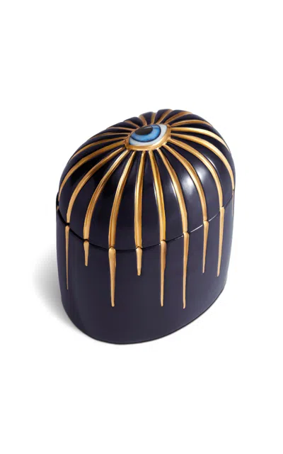 The Lito 3-Wick candle is a whimsical and surreal decorative porcelain candle with hand-painted 24-karat gold plating and inlaid with resin details; filled with paraffin wax in an alluring vetiver; citrus; and moss fragrance developed with perfumer Yann Vasnier; crafted and assembled out of our Atelier in Portugal.