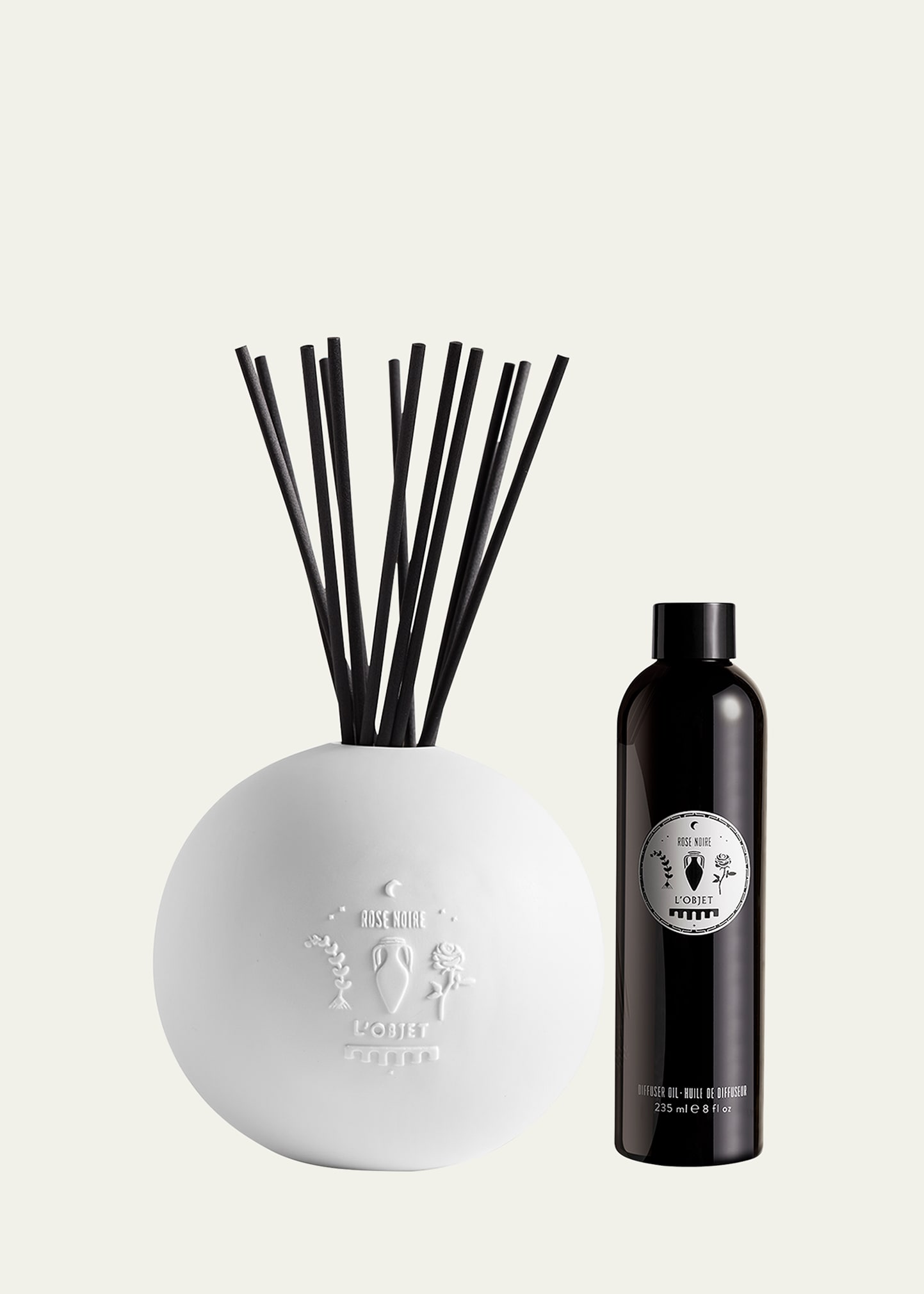 L'Objet Rose Noire Apothecary Diffuser, 8 oz. A sculpted bisque porcelain orb with perfumed oil is presented in a gift box. The L'Objet Apothecary collection transforms ordinary rituals into extraordinary escapes. A modern take on age-old Mediterranean traditions, Europe's beauty artisans and L'Objet house perfumer Yann Vasnier use natural ingredients to formulate rich fragrances and bathing experiences to invigorate the body and mind. ROSE NOIRE: The essence of...
