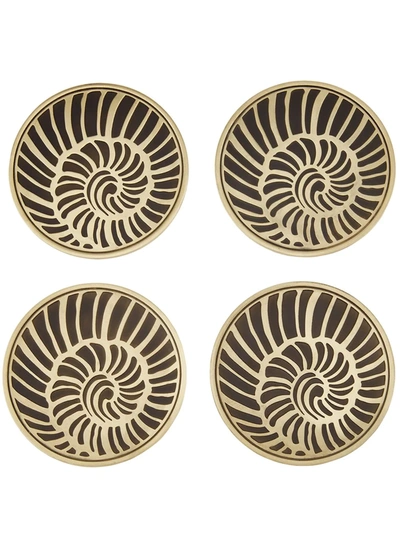 Black/gold-tone Seashell coaster (set of 4) from L'Objet featuring circular design, gold plated and seashell motif.