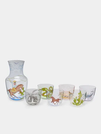 LOBMEYR Marfa Hand-painted Crystal Pitcher With Tumblers (set Of 7) Abask Gift Set In Transparent