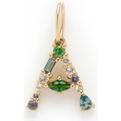 This initial charm makes a stunning, personalized addition to your favorite chain with a sparkling assortment of mixed-cut semiprecious stones. It's also the perfect gift that blends sentimentality with timelessness, transforming everyday wear into something meaningful. Enhancer only; chain sold separately 8.4mm length 9k gold/cordierite/white topaz/green tsavorite/blue topaz Imported