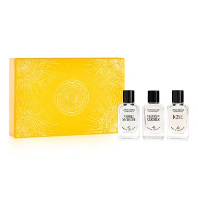 <p>Explore the three floral fragrances to ignite the senses this Holiday.</p> <p>Set Contains:</p> <p>Fleurs de Cerisier Eau de Toilette (7.5ml; 0.25 fl. oz.): Both delicate & floral, evoking fresh notes of cherry blossom from Provence, lily of the valley, and a base of creamy amber and woody musk.</p> <p>Rose Eau de Toilette (7.5ml; 0.25 fl. oz.) The perfect match of romance & rose, with tender notes of Lychee Accord, Rosa Centifolia & Patchouli</p> <p>Néroli Orchidée Eau de Toilette (7.5ml; 0.25 fl oz.) Enchanting citrus & florals harmoniously combined, evoking notes of lemon, a heart of neroli and a base of vanilla"</p>. About this range: Enjoy curated gift sets with our best-sellers, limited editions, and iconic travel-sizes.