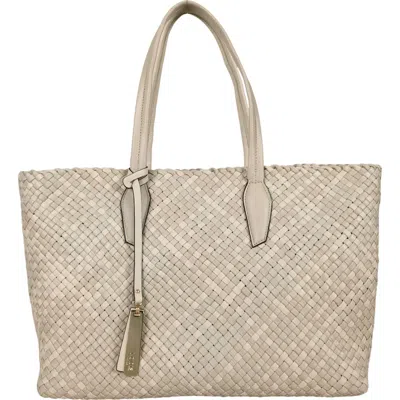 Gleaming hardware highlights the finely woven leather exterior of a spacious tote suspended from shoulder straps for comfortable wear. 13 1/2" x 9 3/4" x 4 3/4" Magnetic closure Top carry handles Leather Imported