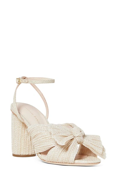 LOEFFLER RANDALL Camelia Vegan Knot Mule With Ankle Strap In Cream Sparkle Mesh