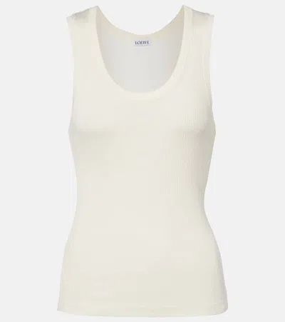LOEWE Anagram Ribbed-knit Silk Tank Top In Neutral