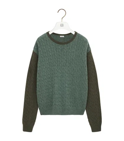 LOEWE Cashmere-blend Two-tone Cable-knit Sweater In Green